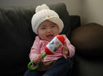 ママ達がお茶してる間、うちのハルちゃんはぐずったり笑ったり忙しかったのですが、ユイちゃんはおとなしくスヤスヤ。