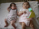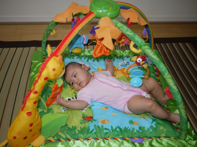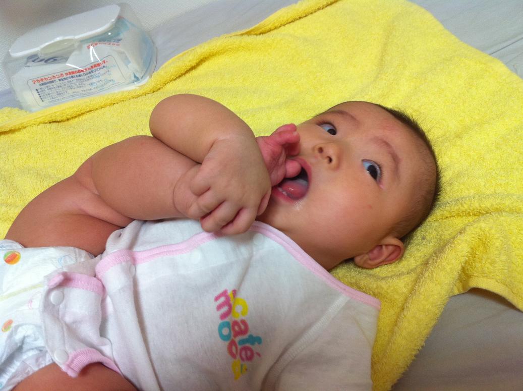 まだ手の位置が微妙ですが、一応、本日、平らなところでの寝返り成功です!