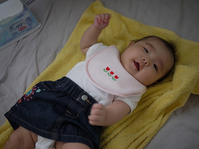 さらにさらに、出産祝いとして会社の皆様にいただいたBaby GAPのスカートも初めてはかせることに!
