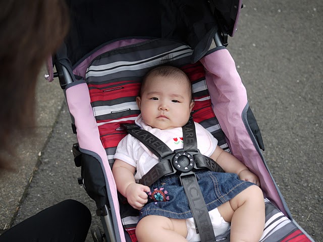 でもしばらくすると慣れてきたようで、ベビーカーに揺られながら居眠りしてました