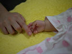 どの赤ちゃんもそうなのかもしれませんが、ハルちゃんはつめの伸びが速く、1日1回切らないと、すぐ伸びてしまい、その手で顔をひっかくので、顔にしょっちゅう傷を作っています。