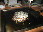 お好み焼き。遠くから店員さんがマヨネーズをかけるパフォーマンスも見ものです!
